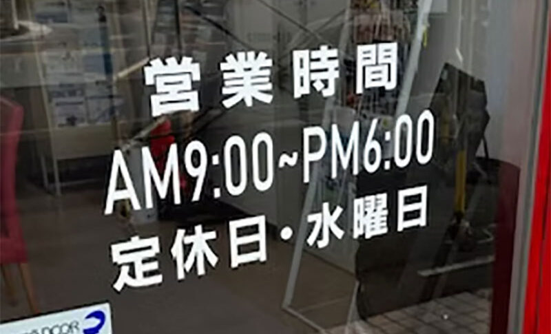 カッティングシートは、塗料に比べて耐久性が高く、屋外でも安心して使用できる優れたサイン素材です。アクリル板への貼り付けはもちろん、ガラス面にも使用でき、透明感を活かしながら店名やロゴ、案内表示を美しく表現できます。視界を遮らずに情報を伝えられるため、店舗のウィンドウ装飾や案内表示として高い宣伝効果を発揮します。